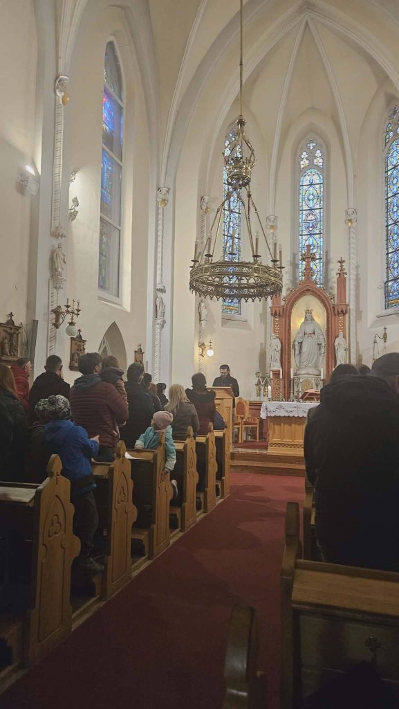 Ének munkaközösségünkkel örömmel vállaltunk énekes szolgálatot a Feltámadt Üdvözítő templomban is nagyböjt derekán. A vasárnapi szentmisén énekeltünk, gitároztunk, s egy régi kis óvodásunk furulyával tette még szebbé a liturgiát.