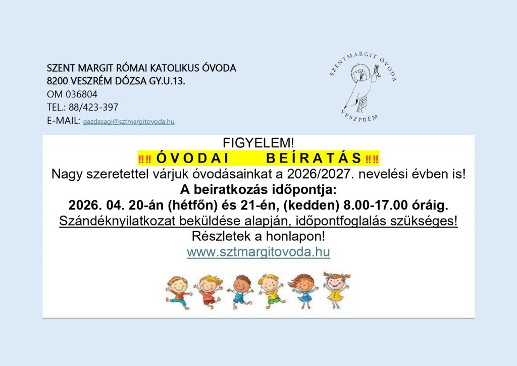ÓVODAI BEÍRATÁS A 2026/27. NEVELÉSI ÉVRE